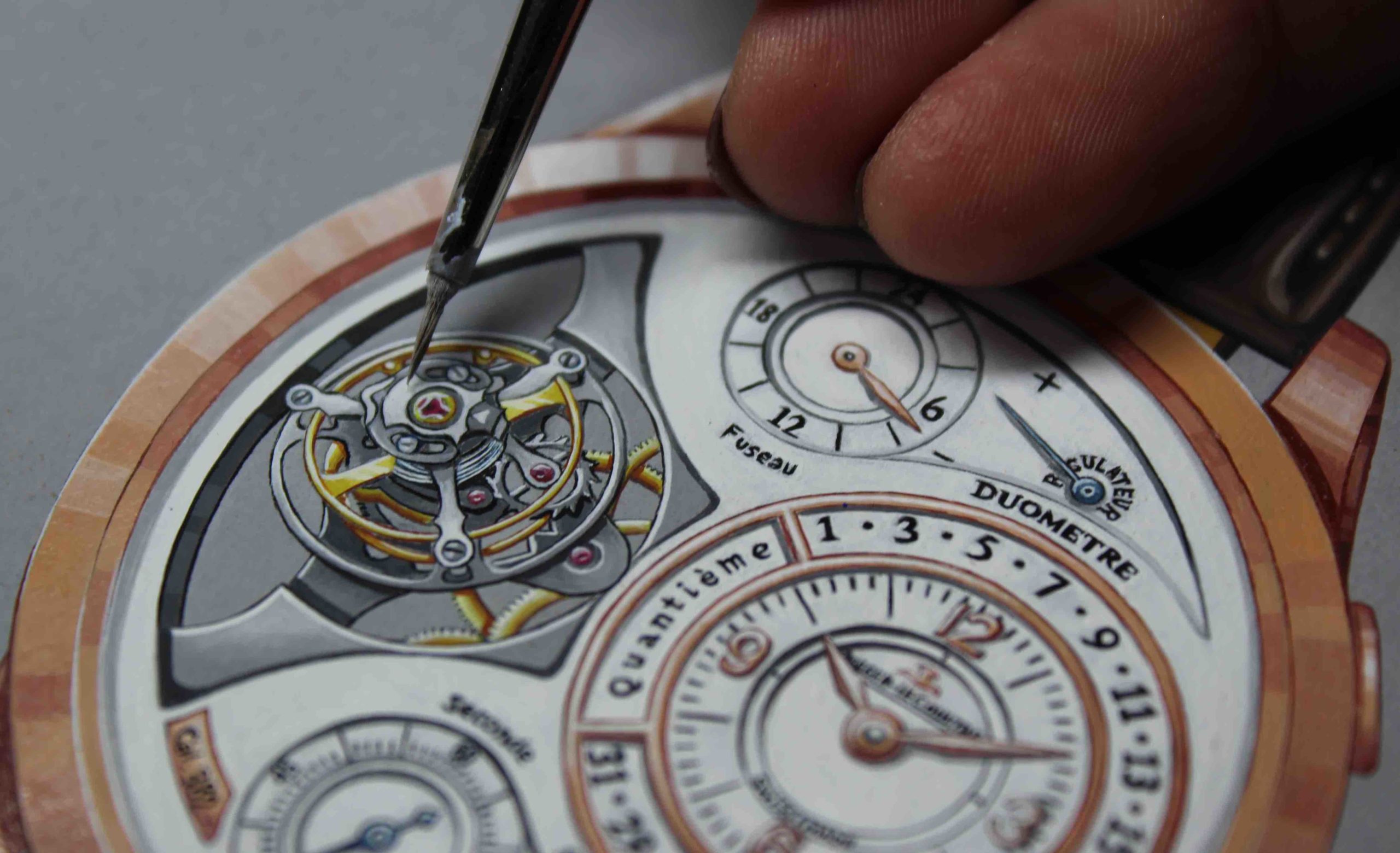 Elle est une fée des pinceaux et des tubes de couleurs à l’heure où les artistes du clic de la souris ont balayé d’un revers de paume les rendus léchés et minutieux que certains acteurs du luxe ultime adoubent encore. Ces clients se font rares, occupés qu’ils sont à limer les dépenses et les dépassements horaires. Car il faut un temps fou, une patience d’ange pour coucher sur le papier à dessin, si organique, les couleurs issues délicatement de tubes de gouache. Celle qui enseigne aussi le gouaché en bijouterie a fondé, après avoir décroché son diplôme dans un lycée de Valence et œuvré cinq années chez Van Cleef & Arpels (dont plus de quatre dédiées à l’émail), Lagarde Jewelry Drawing, son studio éponyme. On la suit délicieusement sur les réseaux où elle sévit et suscite régulièrement un wow effect bien mérité.