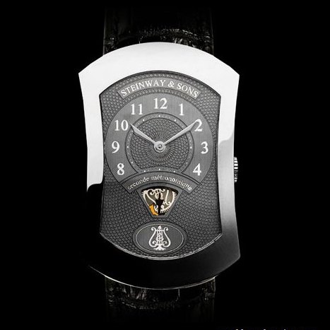 {Published on June 19, 2008} Metronomic Second. When you look at the dial of the automatic watch designed by Fabrizio Cavalca for Steinway & Sons, you can see through the dial an opening that shows a metronome that beats the measure at 60 of tempo.