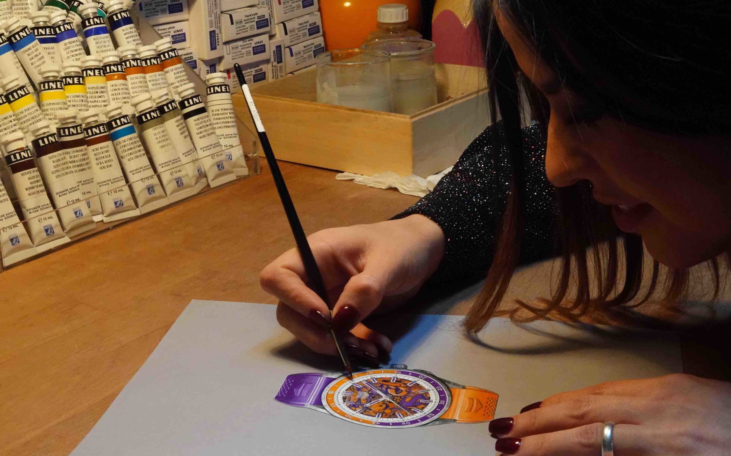 Elle est une fée des pinceaux et des tubes de couleurs à l’heure où les artistes du clic de la souris ont balayé d’un revers de paume les rendus léchés et minutieux que certains acteurs du luxe ultime adoubent encore. Ces clients se font rares, occupés qu’ils sont à limer les dépenses et les dépassements horaires. Car il faut un temps fou, une patience d’ange pour coucher sur le papier à dessin, si organique, les couleurs issues délicatement de tubes de gouache. Celle qui enseigne aussi le gouaché en bijouterie a fondé, après avoir décroché son diplôme dans un lycée de Valence et œuvré cinq années chez Van Cleef & Arpels (dont plus de quatre dédiées à l’émail), Lagarde Jewelry Drawing, son studio éponyme. On la suit délicieusement sur les réseaux où elle sévit et suscite régulièrement un wow effect bien mérité.