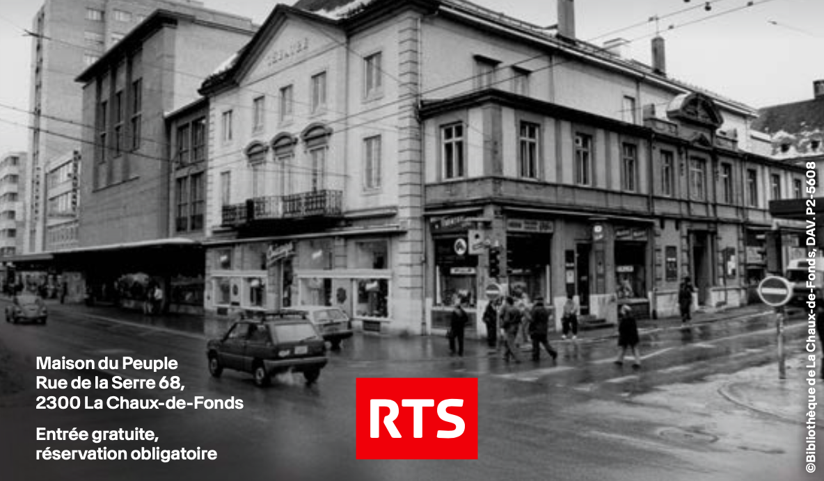 À partir de reportages réalisés par le journaliste de la RTS Malik Melihi et la réalisatrice Andrea Sautereau, « Mémoire(s) de La Chaux-de-Fonds » était à la Maison du Peuple de la Chaux-de-Fonds. Au programme, une projection publique issue des 25’000 documents télévisuels conservés qui mentionnent la ville de La Chaux-de-Fonds depuis que la télévision suisse existe, c’est à dire depuis 1954, ainsi qu’une captation « live » de l’événement.