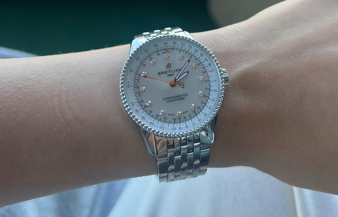 Si vous possédez plusieurs montres, quels rôles jouent-elles dans votre existence? Janine Grandjean: "Pour moi, les montres sont les gardiennes des souvenirs et des rêves, pas seulement du temps. Celle que je porte en ce moment est une Breitling Navitimer. Elle me rappelle un rêve que je continue de nourrir: obtenir un jour mon brevet de pilote."