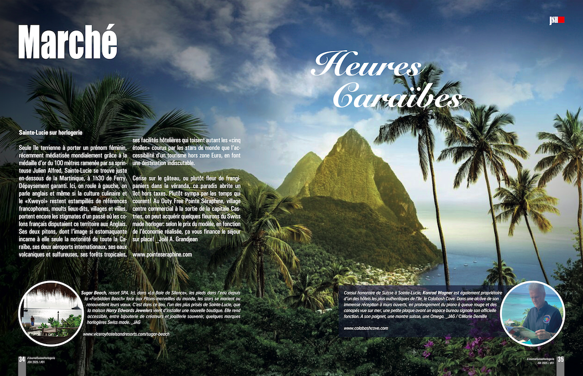 En marge des surfaces qu’il fait vivre avec âme et goût, dans ce village Duty Free de Pointe Séraphine où se trouve aussi à l’étage son espace SAV avec une horlogère, il possède sept points de vente dans l’île. Dont un à l’aéroport Hewanorra International au Sud et trois dans de luxueux Resorts: au Coconut Bay Beach, au Windjammer Landings et, tout récemment, au Sugar Beach.